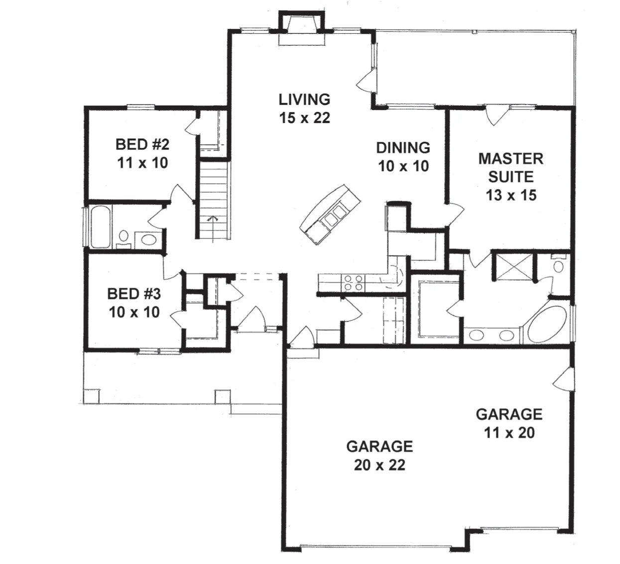 Split bedroom plan - Open living area - Basement - 3 car garage